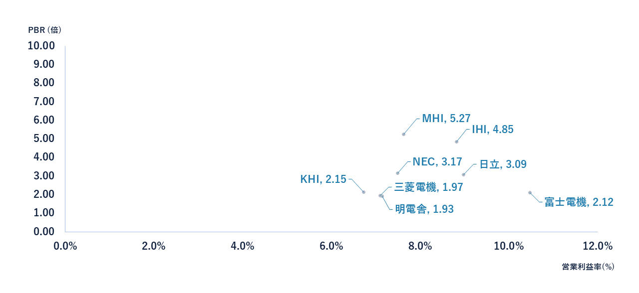その中でも、三菱重工(MHI)とIHIはPBRが5倍前後であり、高く評価されている状況だ。