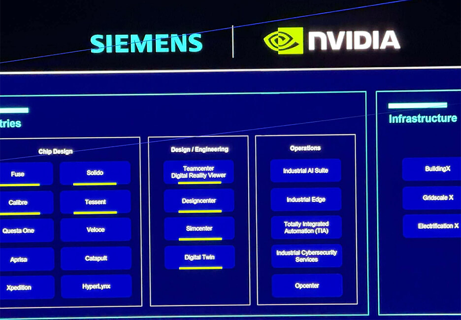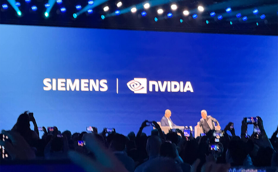 これは単なる「提携発表」ではない。このシーンを、単なるパートナーシップ演出として捉えるのは誤りである。すでに前日のNVIDIA基調講演で、シーメンスとの連携は明確に語られていた。そしてこの日、シーメンスの舞台にNVIDIAのCEOが立った。